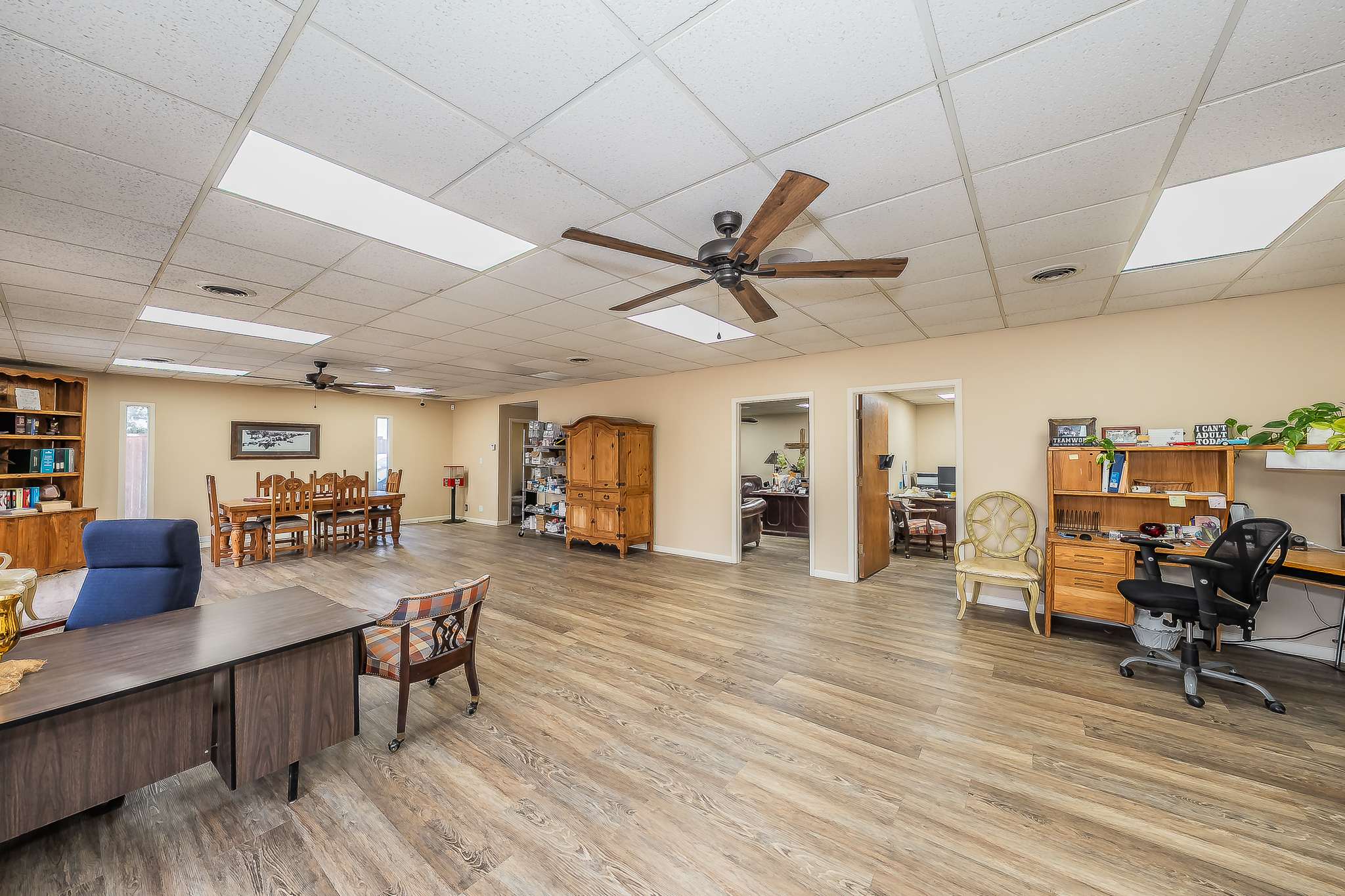 Floor plan, video, photo's etc give excellent layout of property and surrounding area. This layout could be utilized for a variety of businesses. Possibly a retail front or offices including warehouse and storage toward back portion that currently includes 2 warehouses, offices, storage, 2 grade level 16'-18' roll top doors. Three HVAC systems cover all offices/retail and some storage areas. Fenced, Security fence, covered rear parking, top of the line security system with cameras inside/out.